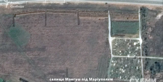 Супутники зафіксували в окупованому російськими військами селищі Мангуш на Донеччині братську могилу. Довжина викопаної ями становить понад 300 метрів, де можуть бути поховані тисячі загиблих. Селище знаходиться за 20 кілометрів від частково захопленого Маріуполя. Відповідні супутникові фото отримали журналісти програми розслідувань "Схеми".