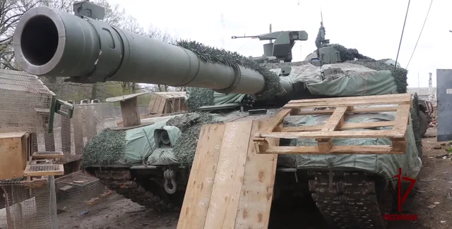 Війська Росгвардії опублікували відео з Харківської області у селі Козача Лопань. На відео потрапила найновіша модифікація Т-90М "Прорив" із комплектом "Накидка" — спеціальне покриття для зменшення теплового випромінювання танка. Вона має знизити помітність бронетехніки для високоточної зброї.