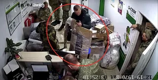 Сергій Колоцей у відділенні пошти, де він відправляв кришку багажника до РФ