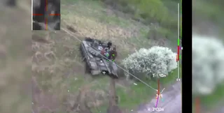 Сили спеціальних операцій України показали як безпілотник-камікадзе, оснащений потужною вибухівкою, влетів у російський танк.