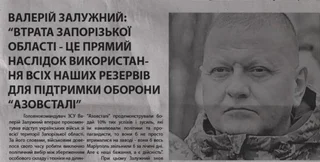У вигаданій статті, опублікованій на першій шпальті, йдеться про те, що Україна нібито втратила контроль над усією Запорізькою областю через використання всіх українських резервів під час оборони заводу "Азовсталь" у Маріуполі. Також у "зверненні" Залужного згадується, що "Європа та США багато чого обіцяли Україні, проте реальної допомоги майже не було".