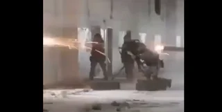 Бійці стріляють по будівлі, у якій розташовуються позиції російських військових.