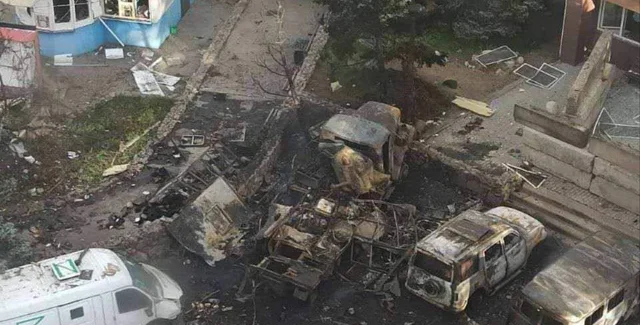 Російські автомобілі, що згоріли в окупованому Енергодарі
