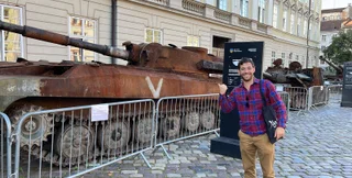 Пол Массаро зробив знімок на тлі згорілого російського танка та поділився враженнями від візиту до Львова.