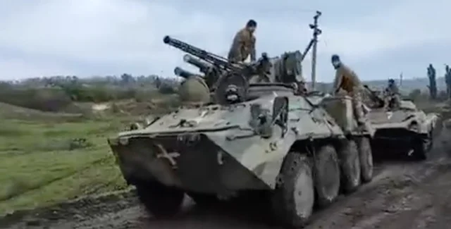 На відео потрапили бійці з 4-ї бригади швидкого реагування Нацгвардії, які взяли на буксир російську БМП-2, ймовірно, із 4-ї Кантемирівської танкової дивізії. Ролик знято на Донеччині.