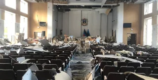За даними окупантів, в будівлю "мерії" Донецька прилетіло кілька снарядів, внаслідок чого приміщення частково зруйноване.