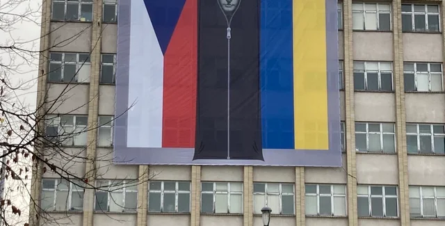 "Ми знаємо, хто наш ворог": на будівлі МВС Чехії вивісили банер із Путіним у чорному пакеті (фото)