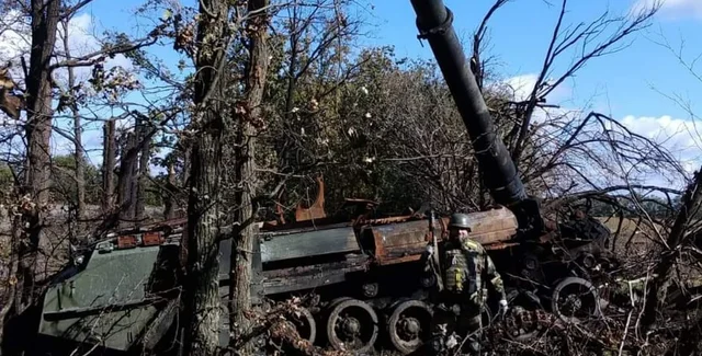 Український військовий на тлі російської техніки | Фото: Генштаб ЗСУ