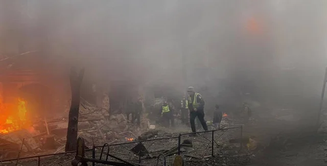 У Київській області внаслідок ракетних ударів ЗС РФ є влучення по житловому сектору та інфраструктурним критичним об'єктам. Про це повідомив голова воєнної адміністрації Київської області Олексій Кулеба. Також інформацію підтвердив голова поліції Київської області Андрій Нєбитов.