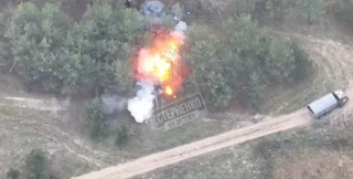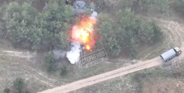 Українські військові завдали удару боєприпасом M982 Excalibur по гаубиці "Мста-Б" на лівому березі Херсонської області. На кадрах видно, як ЗСУ завдають удару точно по 152-мм гаубиці, а на тлі російська вантажівка з військовими їде з позицій.