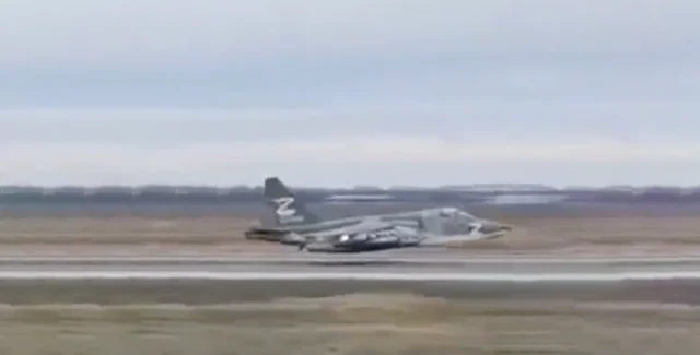 На штурмовику Су-25 чітко видно маркування окупантів буква "Z" на борту. Судячи з ролика, літак успішно приземляється, хоч і яскраво водночас іскрить. Зупинити повітряне судно допомогли аварійні парашути, які прискорили гальмування.