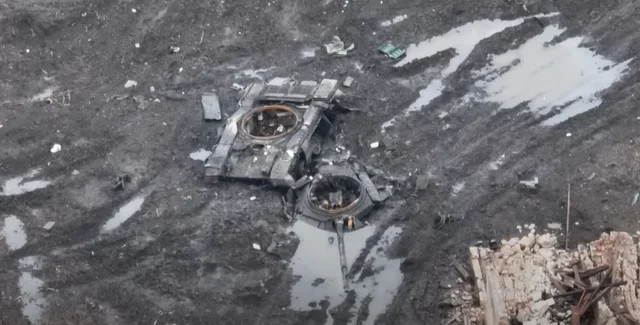 Відірвало вежу: український дрон знищив кинутий російський танк Т-90М (відео)