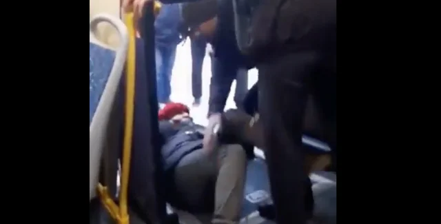 На записі, опублікованому ресурсом WarTranslated, чоловік тягне жінку, що лежить на підлозі, за ноги. Тоді як інші пасажири її ображають.