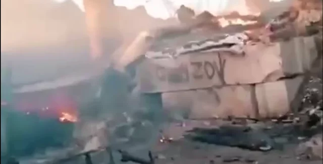 На опублікованих кадрах російський військовий знімає наслідки "прильоту" по позиціях. На них видно, що на місці почалася пожежа: догоряли дерев'яні конструкції, а бетонні блоки перетворилися на гори каміння.