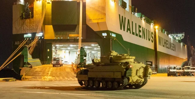 Потім стало відомо, що понад 300 бойових машин прибули до німецького порту зі США. За інформацією журналістів, військову техніку везуть на базу США в Маннгеймі, де, ймовірно, проходитимуть навчання українські військові.