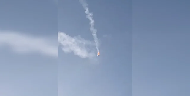 На іншому відео місцевих видно, що російський літак горів, падаючи на землю.