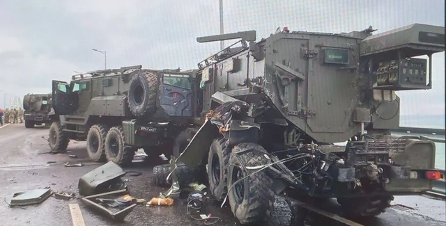 "26 березня колона з п'яти машин З-СТС 34-ї окремої мотострілецької бригади їхала "кримським мостом" у напрямку окупованого Криму. Втім, за офіційними даними, подолати свій шлях до кінця їм завадило "перевищення швидкості та недотримання безпечної відстані під час руху у складі колони". Як результат — чотири з п'яти машин потребують значного ремонту", — йдеться у повідомленні ГУР.