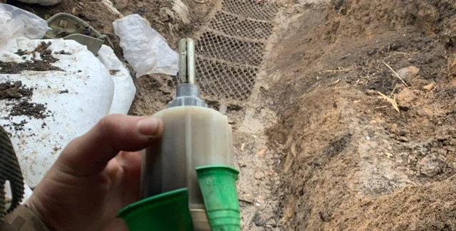 "Якщо потрапляє в окоп чи бліндаж, потрібно мати протигаз або відійти від того місця, бо викликає блювоту та сльози", — зазначив Дмитрашківський.