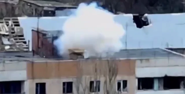 На кадрах видно, як російський військовий ходить дахом багатоповерхового будинку, тримаючи в руках ПЗРК. Потім його уражає безпілотник українських захисників, внаслідок чого звідти здіймаються хмари диму. Можна зауважити, що багатоповерхівка ще до удару була практично зруйнована: пошкоджені дах та стіни, повністю вибиті вікна.