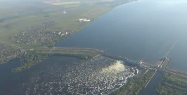 Дані кадри, як зазначають у центрі, спростовують заяву колаборанта Володимира Сальдо про нібито контрольований спуск води з Каховської ГЕС.