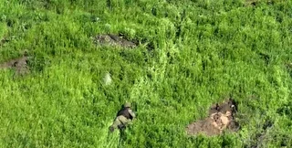 Російські загарбники в старих шоломах, ймовірно радянського виробництва, намагалися втекти від бійців Збройних сил України на Донеччині.