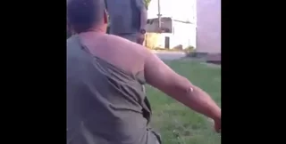На викладеному записі видно, що громадянин у шортах із характерною грацією нетверезого заважає відвідувачам кафе, порушує суспільний спокій, а потім намагається застосовувати силу.