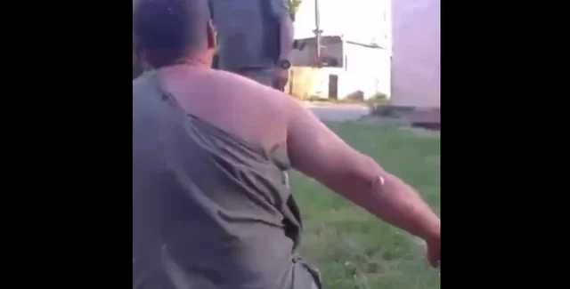 На опублікованому записі один із військовослужбовців тримає чоловіка в шортах за шию, а інший б'є по голові. Потерпілий втрачає свідомість і б'ється головою під час падіння.