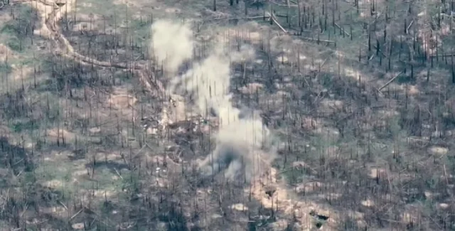 На відео можна побачити, що українські війська застосовують артилерію, щоб знищити окупантів в окопах. Траншеї загарбників розташовані у лісі.