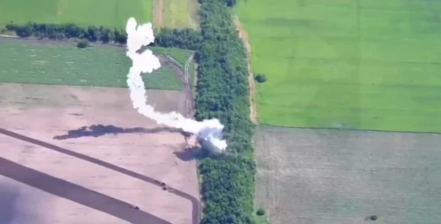 Унаслідок удару по техніці противника боєкомплект ЗРК здетонував, через що в небо злетіла ракета, зробивши в повітрі кілька віражів.
