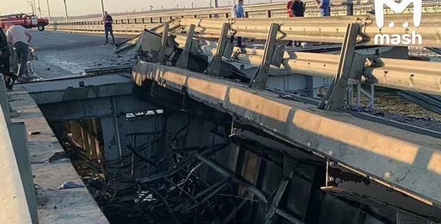 Кримський міст вибухнув зранку 17 травня — припускають, що по ньому влучили дрони чи ракети невідомого походження або перероблені квадроцикли.