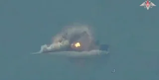 Міноборони РФ не показали результатів від прямого попадання ракети, але повідомили, що корабель було знищено | Фото: Мiноборони РФ