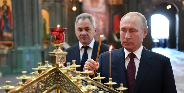 Про президента РФ Володимира Путіна пропагандисти говорять як про того, хто повернув Росії "місію захисниці православної віри". Як саме він це зробив, не згадується.