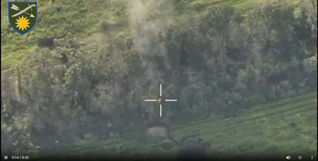 На записі видно, як українська артилерія завдає ударів по позиціях росіян.