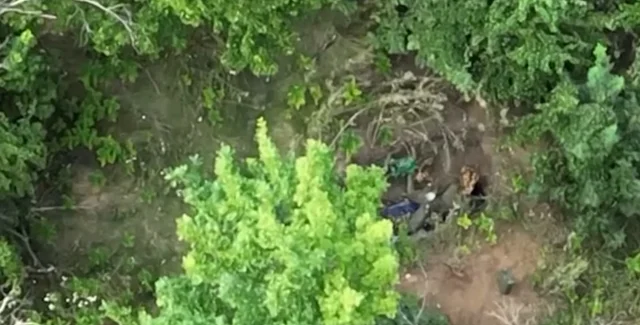 На зафіксованих кадрах видно, що неподалік позиції на одному з напрямків російські окупанти викопали спеціальну яму, куди вкладають тіла своїх загиблих. На момент знімання дроном, там вже є тіла, а потім вміст ями вже горить, і видно, як в напрямку імпровізованого крематорію загарбники несуть ще одне тіло. Тим часом двоє інших солдатів підливають з каністри легкозаймисту речовину, і вогонь в ямі посилюється.