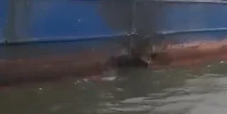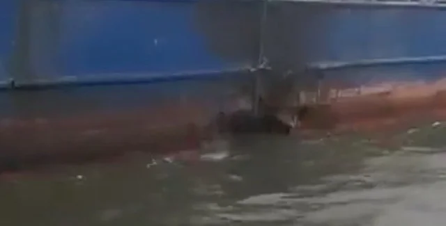 Відео знімають з човна, який пропливає мимо танкера Sig. Камера показує пробоїну у правому борті корабля нижче ватерлінії. Видимий діаметр отвору — близько одного метра. Навколо — поверхня борту, почорніла від можливої пожежі. Також видно, як на палубі танкера працює кілька людей.