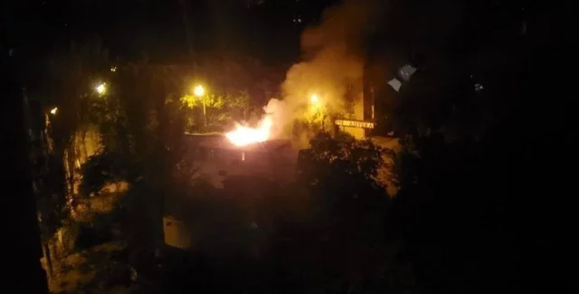 Місцеві жителі заявили, що загорівся магазин, постраждала будівля лікарні. Пропагандисти встигли звинуватити в усьому ЗСУ.