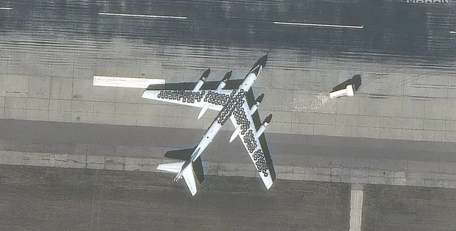 На супутникових знімках Maxar показано авіабазу в Енгельсі; видно два стратегічні бомбардувальники Ту-95 з автомобільними шинами на фюзеляжах.