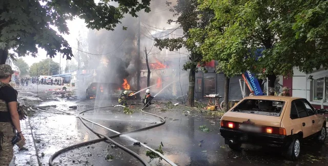 Він заявив, що пожежу, яка виникла на місці "прильоту", було локалізовано. Співробітники екстрених служб допомагають постраждалим.