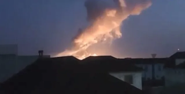 У дописі вказано, що удар відбувся о 05:30 14 вересня (за московським часом). Спершу громадяни, які вели запис, начебто рахували безпілотники — відстежували їхній політ. У певний момент відбувається перший приліт: у небі помітний "прочерк", схожий на політ ракети. Протягом п'ятихвилинного відео можна нарахувати близько п'яти прильотів. Після кожного — яскравий спалах та стовп диму.