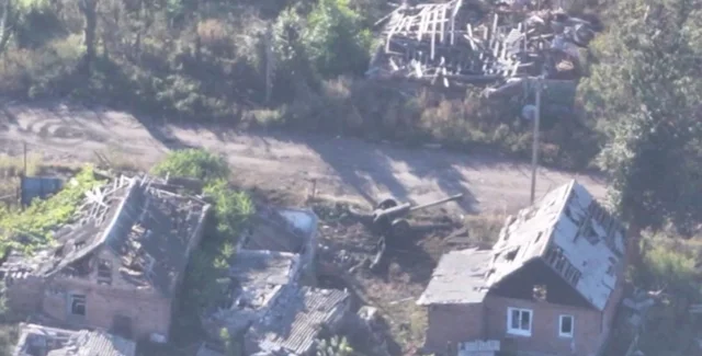 Спочатку аеророзвідка виявила ворожу гармату серед цивільних споруд. Згодом атакували об’єкт, одночасно скинувши на нього кілька боєприпасів. Уразили російську Д-30 з першої спроби.