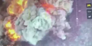 Українські бійці виявили "Солнцепек" та ударили по ньому дроном. Після цього російська техніка вибухнула, а в небо здійнявся густий чорний дим.