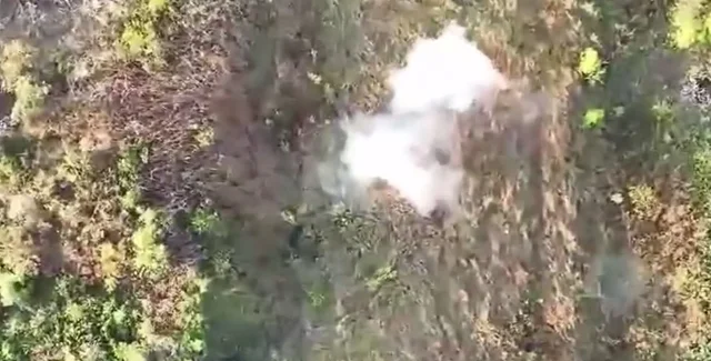 У ролику, який показали бійці, видно, як українські військові спостерігають за окупантом, який рухався по знищеній боями лісосмузі. Після прицілу український безпілотний літальний апарат скинув вибухівку, яка впала біля російського солдата. У результаті цього той загинув, а в небо від боєприпасу здійнявся густий сірий дим.