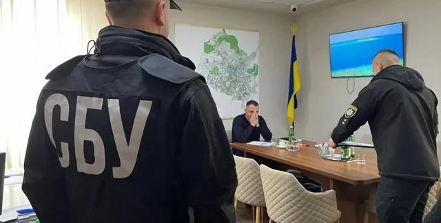 У адмінбудівлі Ужгородської міськради СБУ зустрілась з п'ятьма посадовцями, свідчать фото від пресслужби. Імена людей, яким допомагали виїхати за кордон, правоохоронці не опублікували.