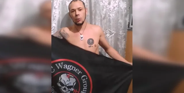 На відео, опублікованому Геращенком, росіянин з оголеним торсом стоїть на тлі білих штор і прикривається нижче пояса чорним прапором ПВК "Вагнер". Говорить Путіну, що пішов на війну з тюрми, щоб "захищати вашу країну, вашу батьківщину, тих, хто голосував за вас".