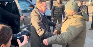 Видання опублікувало кадри зустрічі міністрів. На світлині обидва політики тиснуть один одному руки. Журналісти також зазначили, бо Пісторіус і Умєров "обійнялись".