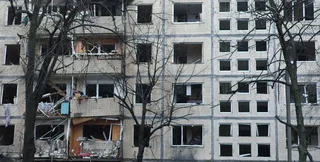 Повідомляється, що пошкоджені вікна будинку затягнуть плівкою та після цього проведуть експертизу пошкодженої багатоповерхівки.