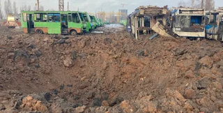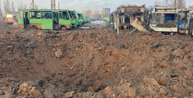 Російська ракета С-300 вдарила посеред транспортного депо в Салтівському районі Харкова, утворивши вирву глибиною кілька метрів. Мікроавтобуси та тролейбуси, які стояли неподалік, засипало землею. Світлини з місця надзвичайної події, яка сталася в ніч на 20 грудня, опублікували на порталі "Суспільне".
