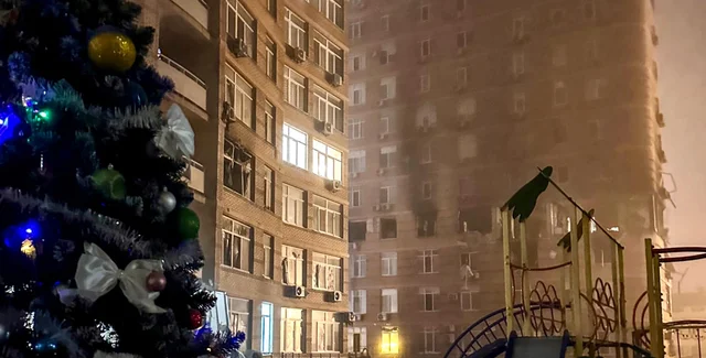 Після ракетного обстрілу Одеси 29 грудня, коли один зі снарядів влучив у багатоповерхівку і спровокував пожежу з другого по п'ятий поверхи, убив двох людей та ще 10 поранив, мешканці кварталу прикрасили новорічну ялинку і запалили на ній гірлянду. Відповідне фото опублікувала пресслужба ДСНС в Одеській області. На знімку видно, що ялинка стоїть поруч зі зруйнованим дитячим майданчиком.
