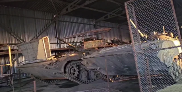 На відео показана бронетехніка, БМП-1, забезпечена сітчастими екранами. Цей захист покриває частину рухового відсіку, верхню частину і бічні сторони башти.