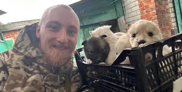Військовий Денис Обухов прагне знайти песикам добрих власників, аби малеча зростала подалі від зони активних бойових дій.